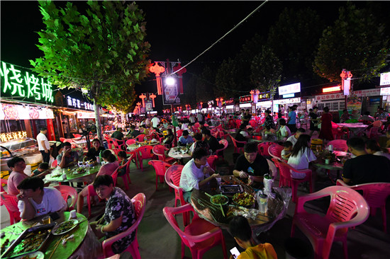 “天一熱就不想做飯,和朋友們吃點燒烤,喝點啤酒,清涼又解暑。”正在就餐的市民王先生說。夜市旁邊還有露天舞場,舞曲悅耳動聽。這里不僅是廣大市民消費和娛樂的好地方,也是鍛煉身體的好去處。開發(fā)區(qū)附近的一位居民劉先生高興地說:“我們每天出來逛夜市,不僅讓自己放松了心情,而且還享受了一份清涼?!雹?