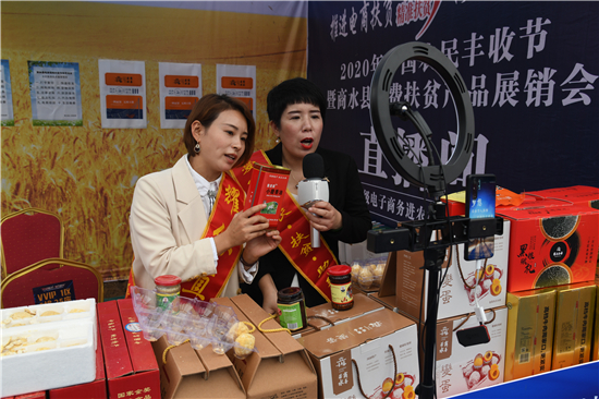 9月22日,兩名“網(wǎng)紅”在商水縣中國農(nóng)民豐收節(jié)暨商水縣消費(fèi)扶貧產(chǎn)品展銷會上進(jìn)行直播銷售。近年來,商水縣大力發(fā)展電商扶貧,出臺政策,幫助農(nóng)民通過網(wǎng)絡(luò)直播等手段把本地的豬蹄、咸鴨蛋、牛肉、變蛋、黑色五谷等特色農(nóng)產(chǎn)品銷往全國各地,打開農(nóng)產(chǎn)品銷售新渠道,為農(nóng)民脫貧致富奔小康增添新動(dòng)能。