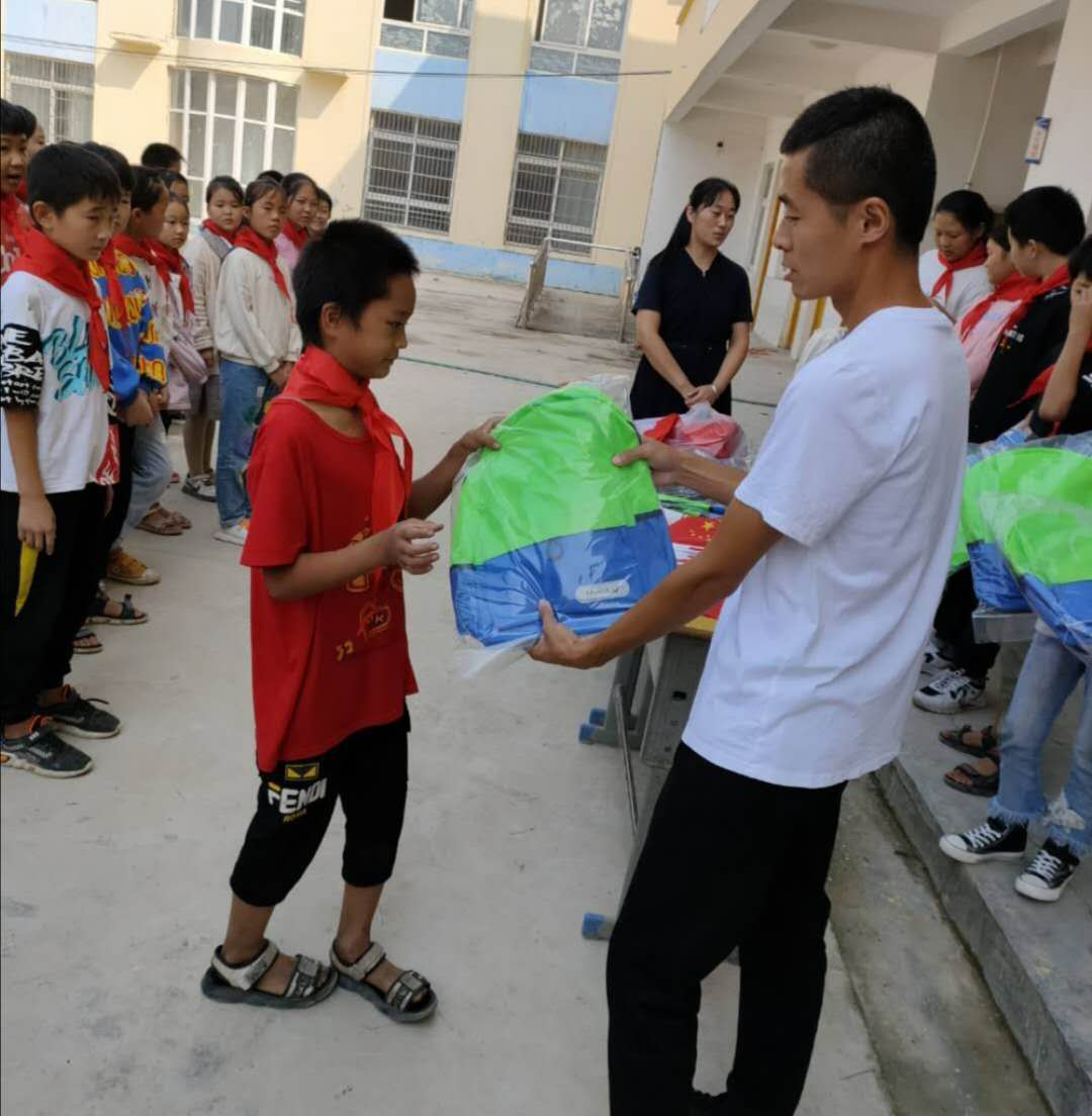 同時,在杜莊小學(xué)校長黃春峰的帶領(lǐng)下,朱曉娜、姚家明深入各班級,了解困難學(xué)生的實際情況, 將自行購買的20個書包及部分文具發(fā)放給困難學(xué)生,鼓勵學(xué)生們要好好學(xué)習(xí),做一個“德、智、體、美、勞”全面發(fā)展的合格少先隊員。