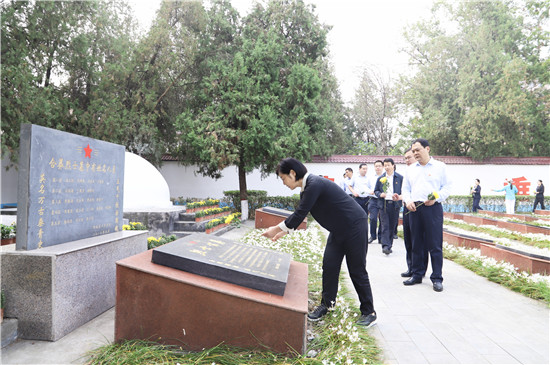 羅文閣緩步上前,代表縣四個(gè)班子仔細(xì)整理緞帶。全體人員面向烈士紀(jì)念碑行三鞠躬禮,并深情瞻仰烈士陵園,向英雄烈士獻(xiàn)上鮮花,表達(dá)對(duì)烈士的無(wú)限敬仰和哀思。①15