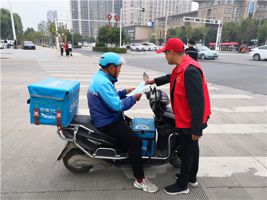 每天早晚市民、學(xué)生出行的兩個(gè)交通高峰時(shí)段,在沈丘縣兆豐大道與陽(yáng)光路交叉口,沈丘縣自然資源局志愿者身著紅馬甲,佩戴“文明勸導(dǎo)”袖章,舉指揮旗,掛口哨,在交通路口認(rèn)真履行“文明交通勸導(dǎo)”志愿者職責(zé),發(fā)放倡議書(shū),耐心引導(dǎo)機(jī)動(dòng)車、非機(jī)動(dòng)車及行人遵守交通規(guī)則,遇到老人、小孩過(guò)斑馬線時(shí),志愿者們立即上前幫扶;面對(duì)交通違規(guī)行為,志愿者們耐心上前勸說(shuō)。志愿者們以高度的社會(huì)責(zé)任感、昂揚(yáng)的精神面貌展現(xiàn)了他們的良好形象,為廣大市民營(yíng)造一個(gè)平安的出行環(huán)境,贏得了市民的大力稱贊。