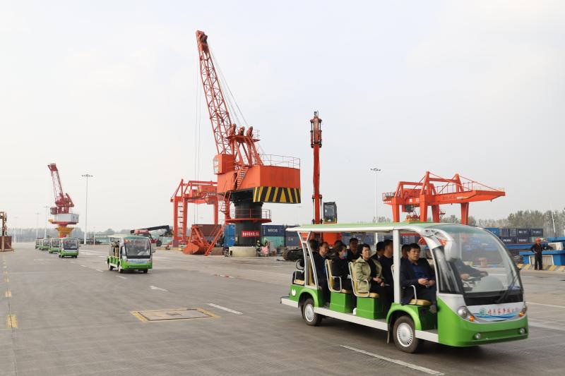 在中心港碼頭,工作人員向來(lái)賓詳細(xì)介紹了周口的航運(yùn)總體情況,以及在周口大力發(fā)展臨港經(jīng)濟(jì)的大背景下,周口港區(qū)臨港產(chǎn)業(yè)規(guī)劃布局和發(fā)展現(xiàn)狀。隨后,來(lái)賓乘坐觀(guān)光車(chē),到港池前沿近距離了解碼頭運(yùn)營(yíng)情況,親身感受碼頭繁忙的作業(yè)現(xiàn)場(chǎng)同時(shí),來(lái)賓們向工作人員了解碼頭貨源、運(yùn)量、運(yùn)輸費(fèi)用等問(wèn)題,工作人員詳細(xì)解答。大家紛紛贊嘆:“想不到中原腹地?fù)碛腥绱藘?yōu)越的水運(yùn)條件,還建設(shè)了規(guī)模宏大的內(nèi)河港口,周口臨港經(jīng)濟(jì)發(fā)展氣勢(shì)如虹,前景一片光明!”②9