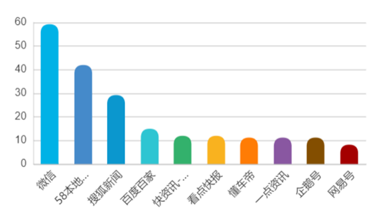 本屆周商大會,網(wǎng)絡(luò)媒體報道共151篇,占比41.71%,在媒體中占比最高;手機(jī)客戶端參與報道130篇,占比35.91%,占比第二;微信公眾號參與報道16.3%,微信占比第三。各大主流媒體、商業(yè)媒體、自媒體的報道覆蓋主流輿論場和民間輿論場,將“周口”推向熱點話題,周口形象、周口變化、周口建設(shè)、周口發(fā)展成了重要話題,讓全國了解周口。
