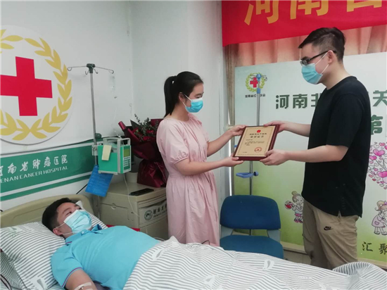 “王俊男先生,感謝您成為一名光榮的造血干細胞捐獻者,您的偉大善舉將使血液病患者獲得新生?!痹诤幽霞t十字會為王俊男頒發(fā)的榮譽證書上,給予了他最崇高的敬意。