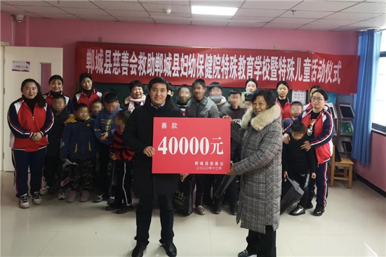12月29日,鄲城縣慈善會會長趙愛梅、常務副會長趙如軒、副會長朱山峰、秘書長代文一行4人,到鄲城縣婦幼保健院特殊教育學校對特殊兒童進行慈善捐助。