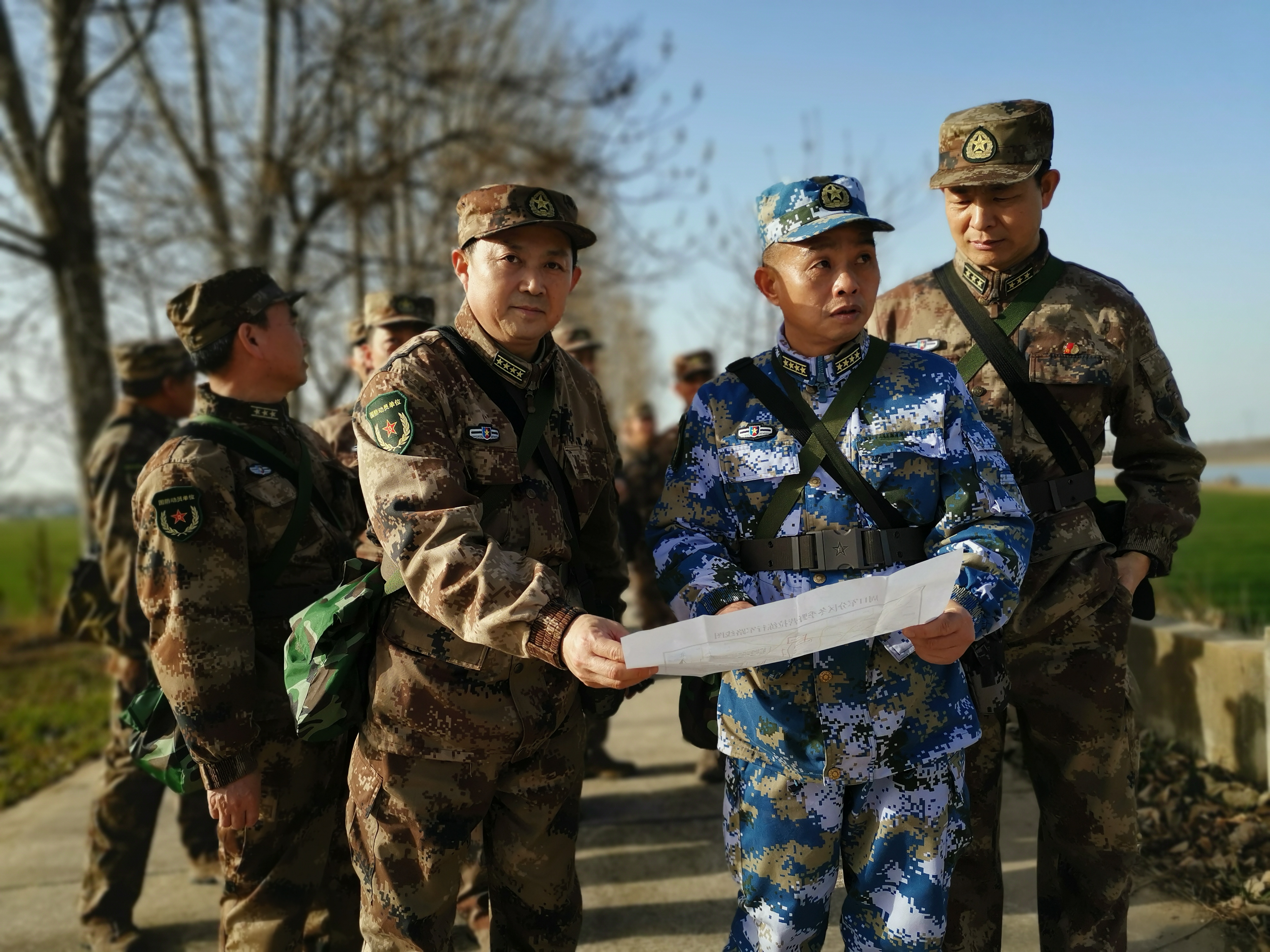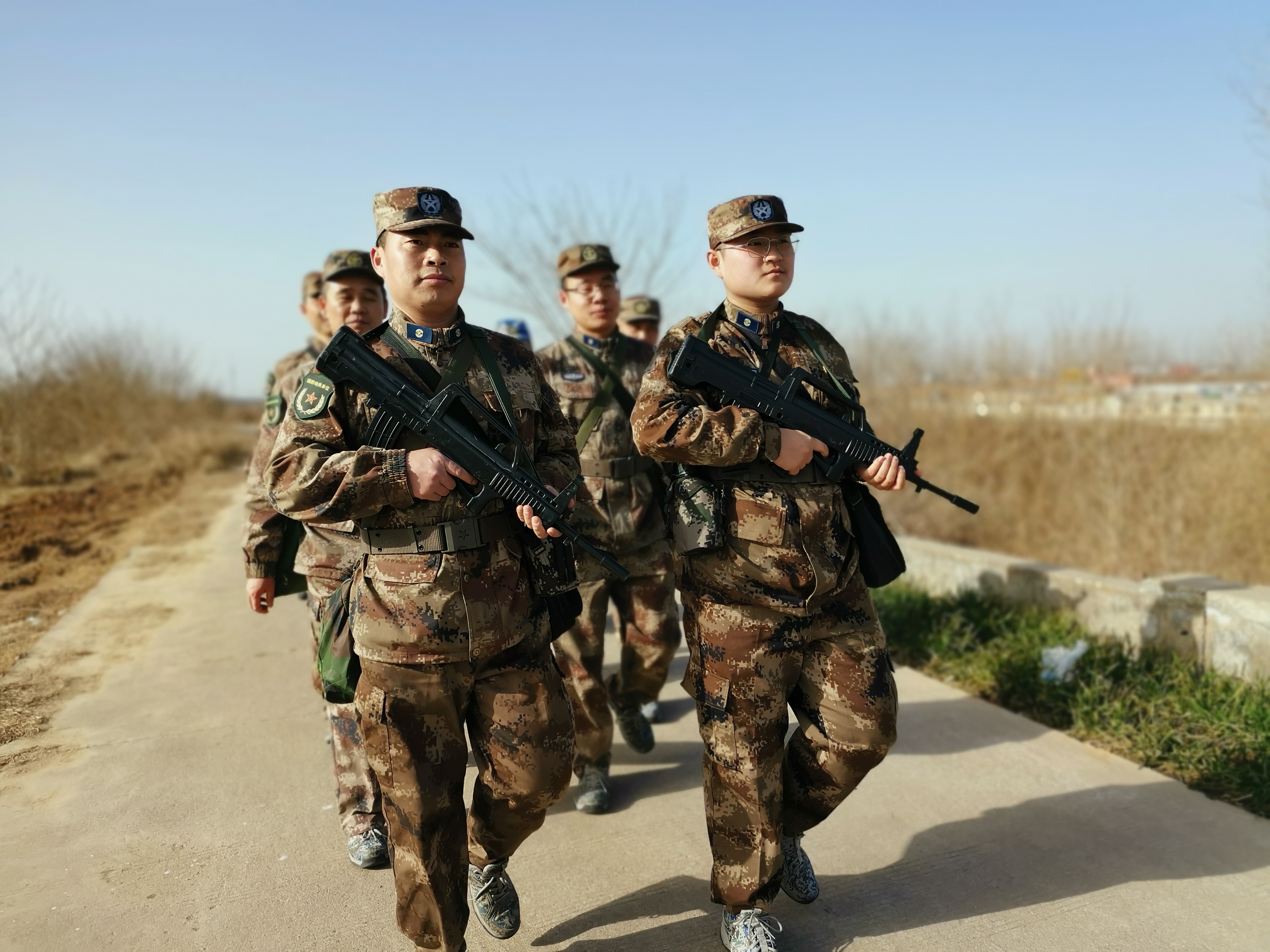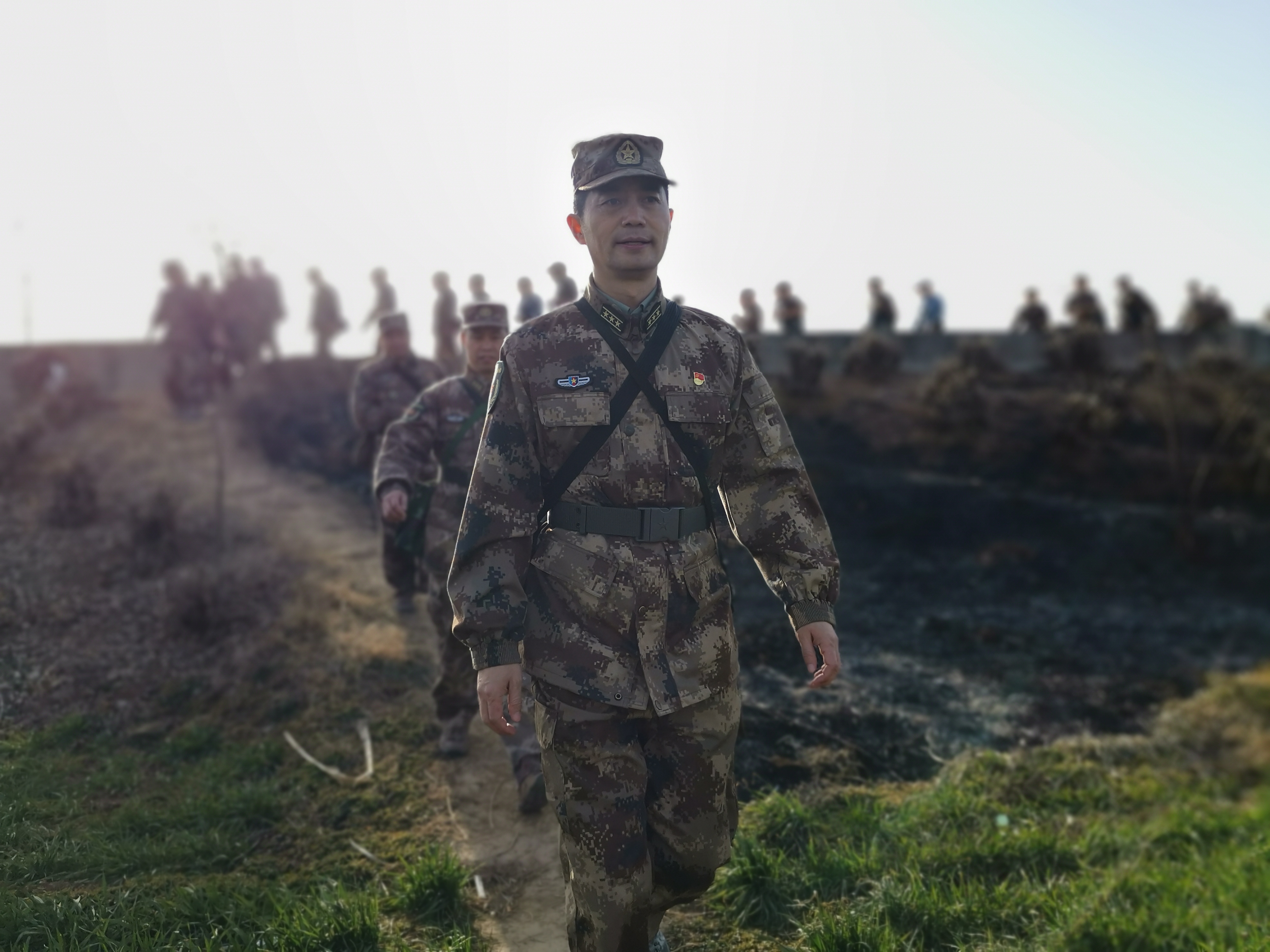 冬日暖陽里,沙潁河畔,一群迷彩身影行走在蜿蜒曲折的沙河堤上。陽光下,“河南省周口軍分區(qū)”的旗幟迎風(fēng)飄揚。