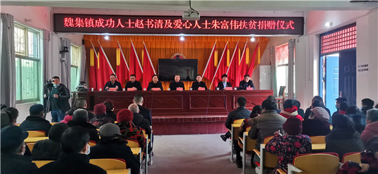 1月29日,天氣乍暖還寒,魏集鎮(zhèn)政府人頭攢動(dòng),喜氣洋洋,一片熱鬧的景象。內(nèi)蒙古希拉穆仁旅游置業(yè)開發(fā)有限公司董事長(zhǎng)、內(nèi)蒙古楊子照明鋼桿制造有限責(zé)任公司董事長(zhǎng)、內(nèi)蒙古周口商會(huì)會(huì)長(zhǎng)趙書清和愛心人士朱富偉一行,帶著整整兩卡車米、面、油共計(jì)八萬(wàn)元生活物資,回到家鄉(xiāng)魏集鎮(zhèn)開展扶貧濟(jì)困活動(dòng),在嚴(yán)寒的冬日給魏集鎮(zhèn)困難群眾帶來(lái)了溫暖和祝福??h政協(xié)主席孫培忠,縣委常委、宣傳部長(zhǎng)李本磊出席活動(dòng)。魏集鎮(zhèn)黨委書記衛(wèi)春忙,鎮(zhèn)長(zhǎng)劉艷光參加活動(dòng)。