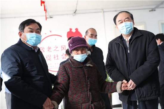 太康縣大許寨格花里行政村居村聯(lián)養(yǎng)點(diǎn)占地5畝,入住特困老人80余人,社會留守老人3人,老人們在這里有吃有穿還有娛樂活動,生活得十分幸福。徐濟(jì)超一行走進(jìn)大許寨鎮(zhèn)葛花李居村聯(lián)養(yǎng)點(diǎn),向老人們祝賀新春。徐濟(jì)超指出,各級各部門要始終堅(jiān)持以人民為中心的發(fā)展思想,踐行初心使命,聚焦群眾冷暖,用足用好惠民政策,千方百計(jì)幫助群眾解決實(shí)際問題,讓群眾老有所養(yǎng)、病有所醫(yī)、住有所居,讓大家共享改革發(fā)展成果,確保讓廣大群眾過個(gè)歡樂祥和的新春佳節(jié)。