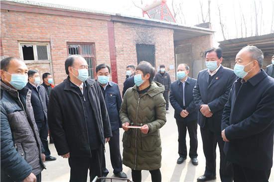 大許寨洪山廟村的張核心,由于家中有兩個(gè)孩子患精神疾病,生活困難。徐濟(jì)超走進(jìn)張核心家中,詳細(xì)詢問了其家庭情況。當(dāng)?shù)弥诋?dāng)?shù)攸h委、政府的幫助下,張核心從事養(yǎng)殖生活得以保障的情況后,徐濟(jì)超叮囑張核心保重身體,堅(jiān)定信心渡過難關(guān),靠勤勞雙手實(shí)現(xiàn)發(fā)家致富。
