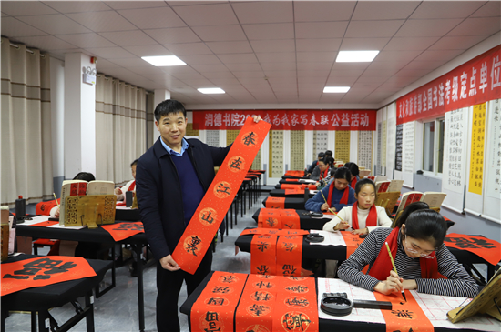 “春聯(lián)是我們中華民族獨(dú)有的文化符號,象征著喜慶,蘊(yùn)含著吉祥。我為我家寫春聯(lián)公益活動具有很強(qiáng)的廣泛性、群眾性、公益性,送祝福、亮成績與弘揚(yáng)傳承中華優(yōu)秀傳統(tǒng)文化相結(jié)合,在學(xué)生心中樹立了文化自信。”陳吳陸欣慰地說。