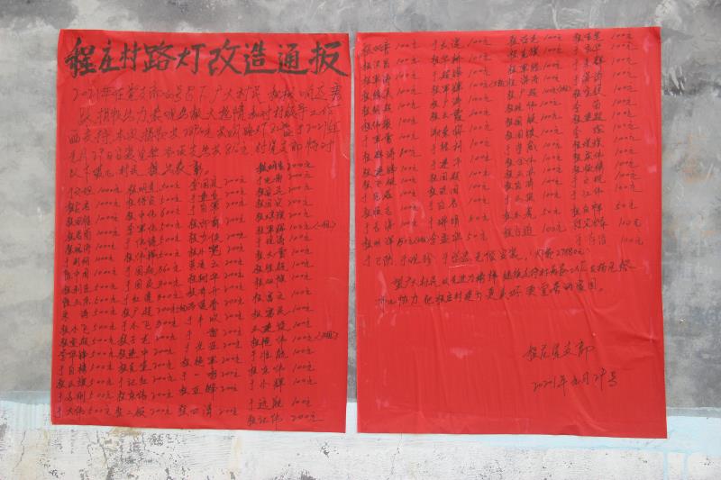 2021年2月3日,周口市商水縣郝崗鎮(zhèn)程莊村的一面墻上的紅紙黑字大字報吸引了記者的注意,上面密密麻麻地寫著愛心村民的姓名和捐款金額,經(jīng)走訪村干部得知實(shí)情。