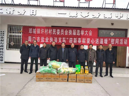 新春佳節(jié)來臨之際,為確保困難群眾過上一個歡樂喜慶文明祥和的春節(jié),2月7日,市鹽業(yè)執(zhí)法支隊黨委書記、支隊長丁永華帶領(lǐng)班子成員到商水縣鄧城鎮(zhèn)許村開展扶貧幫扶、春節(jié)慰問活動,走訪慰問困難群眾,為他們送去米、食用油等慰問品,并送去黨和政府的關(guān)懷。
