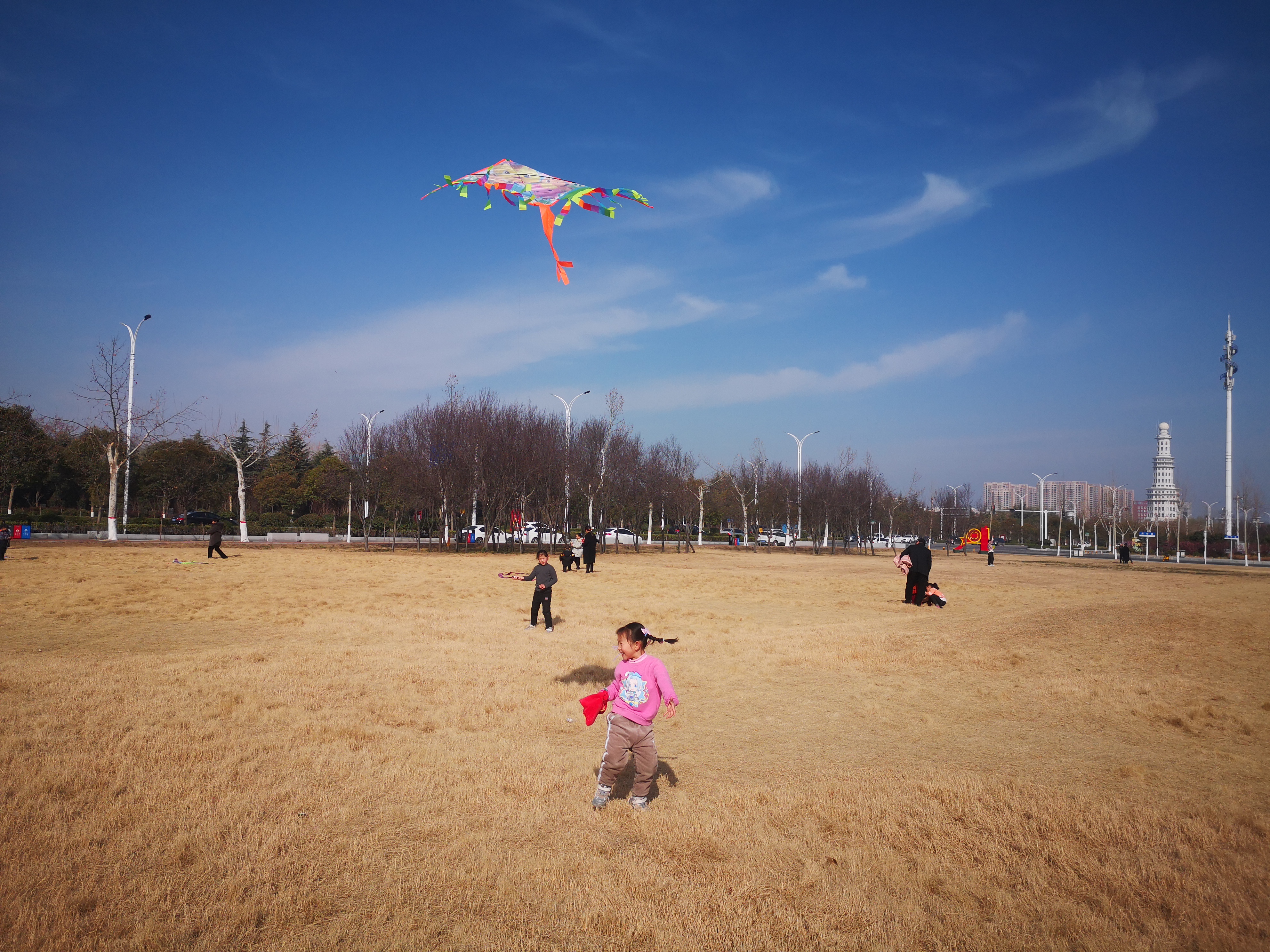 2月16日,周口大道旁邊的大草坪上,小朋友在放飛風(fēng)箏。當(dāng)日,藍天白云,春光正好,民眾樂享春節(jié)假日。