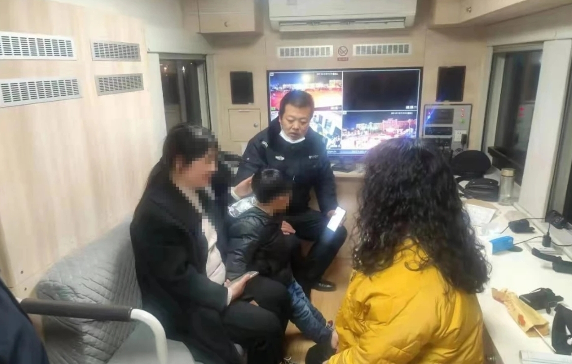 當(dāng)晚9時(shí)許,因廣場(chǎng)上有人放煙花,值勤隊(duì)員上前制止后,發(fā)現(xiàn)廣場(chǎng)上一名男孩在大聲哭泣,上前詢問發(fā)現(xiàn)是名走失兒童。經(jīng)詢問得知,男孩名字叫周一行,5歲,馬廠鎮(zhèn)周莊人,在廣場(chǎng)附近和媽媽走散。
