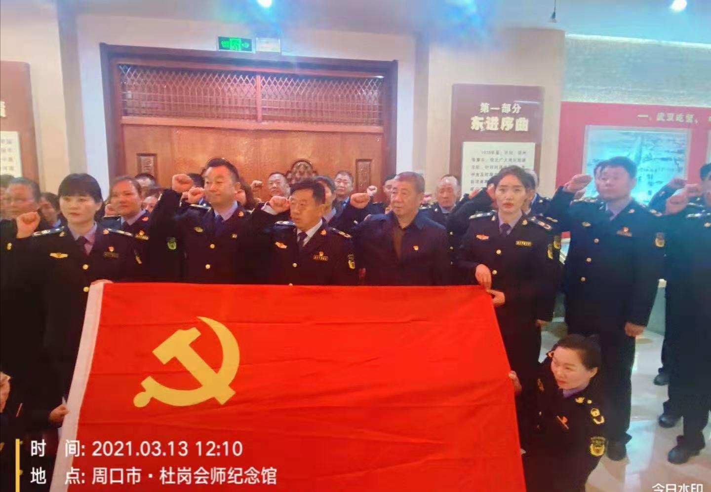在杜崗會(huì)師紀(jì)念館,管理員朱建璽用樸實(shí)的話語為分局全體中層干部上了一堂生動(dòng)的黨課。分局黨組書記李紅旗和參加教育活動(dòng)的全體人員在一塊塊展板前深情駐足,認(rèn)真聆聽管理員的講解,接受革命洗禮。面對(duì)革命先烈一次次豐功偉績(jī),全體人員再次舉起右手,重溫入黨誓詞,他們莊嚴(yán)宣誓,鏗鏘有力,堅(jiān)決用實(shí)際行動(dòng)奮進(jìn)新征程。