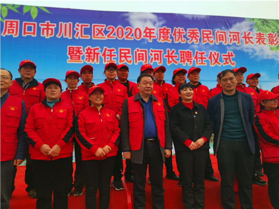 會(huì)場(chǎng)設(shè)在中州路橋北頭向東100米的沙潁河北岸。區(qū)河長(zhǎng)辦主任李海濤宣讀《川匯區(qū)河長(zhǎng)制辦公室關(guān)于表彰2020年優(yōu)秀“民間河長(zhǎng)”的決定》《周口市川匯區(qū)河長(zhǎng)制辦公室關(guān)于聘任“民間河長(zhǎng)”的通知》。與會(huì)領(lǐng)導(dǎo)共同為10名受表彰的優(yōu)秀“民間河長(zhǎng)”頒發(fā)榮譽(yù)證書,為20名新任“民間河長(zhǎng)”頒發(fā)聘任證書。