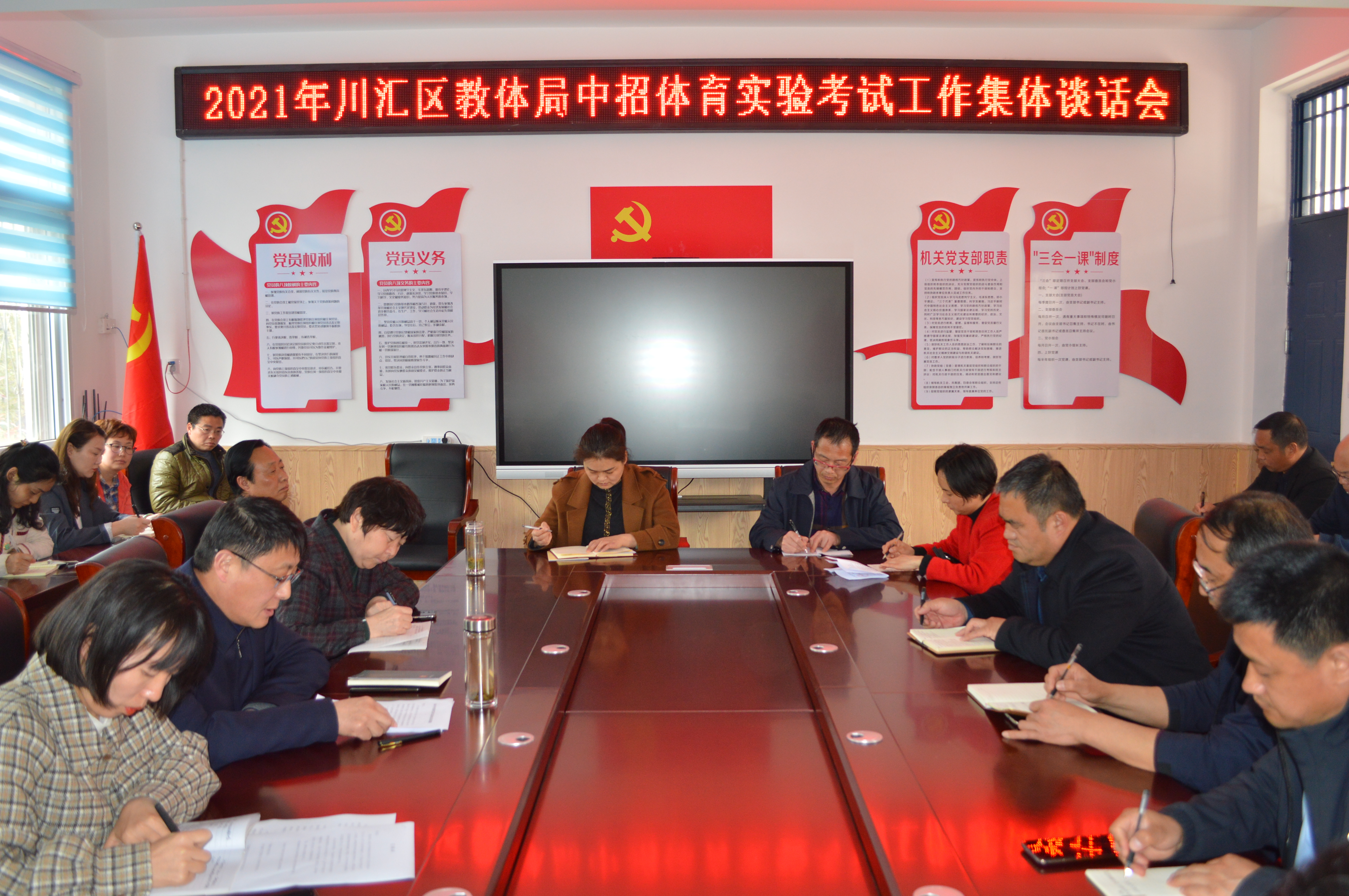 4月9日下午,川匯區(qū)教育體育局召開中招體育實驗考試集體談話會。派駐區(qū)教體局紀檢組組長許攀主持會議,區(qū)教體局黨組書記、局長徐德志進行黨風廉政談話,區(qū)教體局分管領(lǐng)導、考試負責人及考務人員、各中學校長參加會議。
