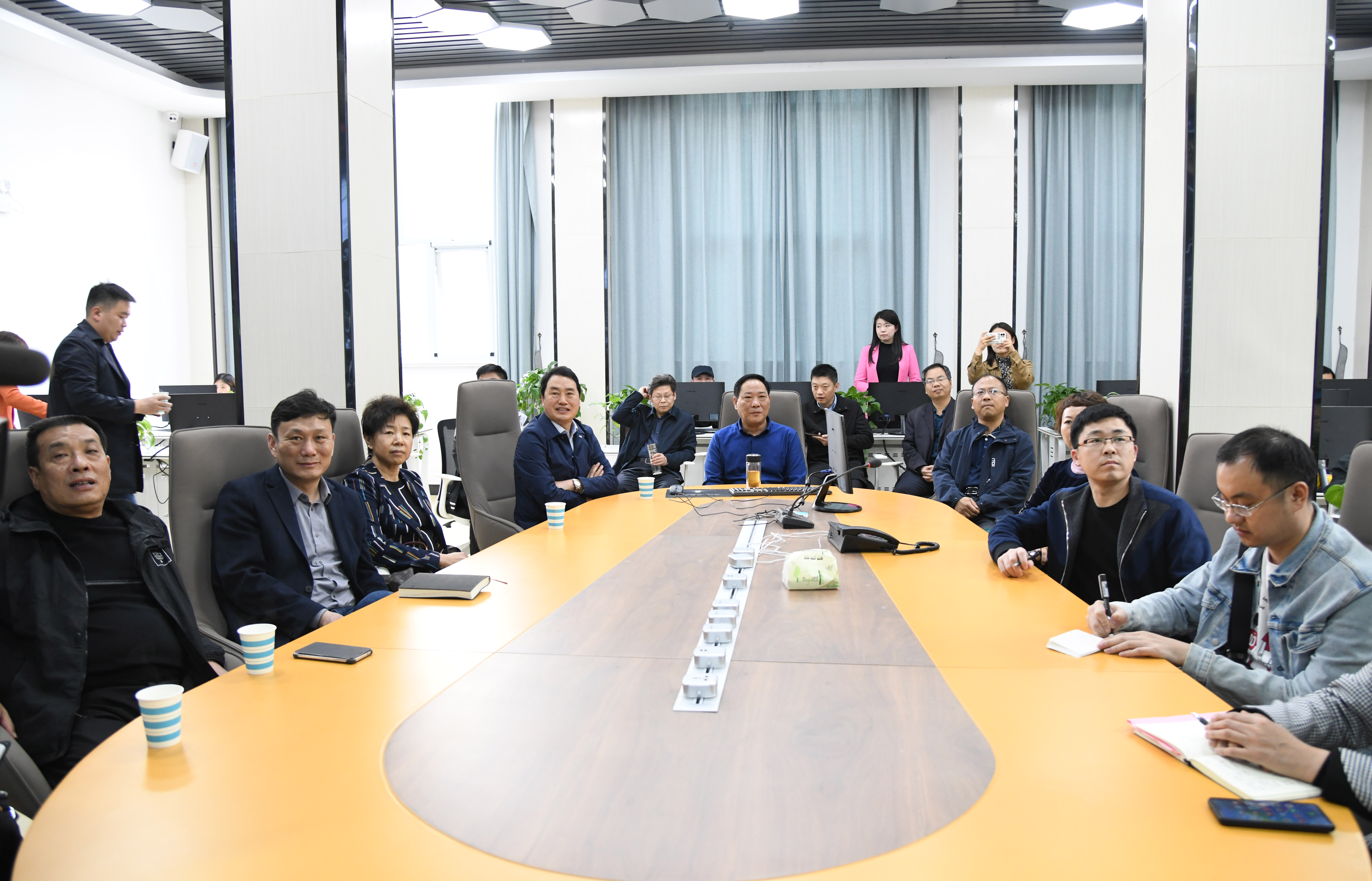 4月16日下午,開封日?qǐng)?bào)報(bào)業(yè)集團(tuán)黨委書記、社長(zhǎng)、董事長(zhǎng)劉會(huì)敏一行13人,來到周口報(bào)業(yè)傳媒集團(tuán)進(jìn)行報(bào)業(yè)經(jīng)營(yíng)、媒體融合和人事管理等方面的交流。記者孫安平攝 ②9