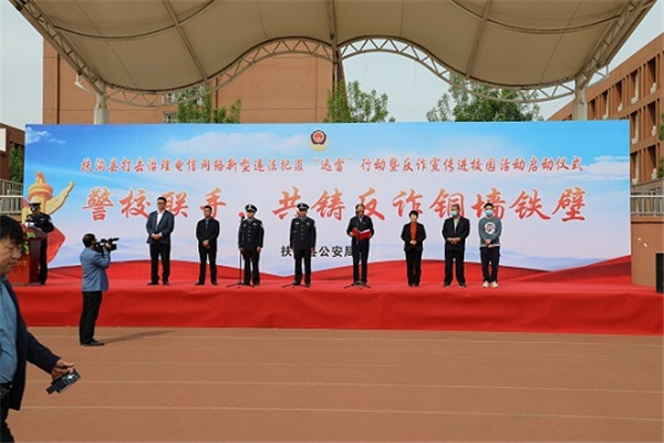 為進一步提高學(xué)生對電信網(wǎng)絡(luò)詐騙手法的識別和防范能力,4月18日9點30分,扶溝高中聯(lián)合扶溝縣公安局、扶溝縣教體局、電信運營商、銀行等單位共同舉辦了“警校聯(lián)手,共鑄反詐銅墻鐵壁”宣傳教育活動,本次宣傳教育活動也是扶溝縣反詐宣傳進校園活動的啟動儀式。