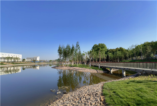 與城區(qū)的各個游園相比,此處稍顯僻靜,翠陰蒙密,再加上流水淙淙,更有風物清幽之感。閑暇之時,三三兩兩的居民結伴散步,大自然的靜謐與靈動在這里相交相融,讓人心曠神怡。