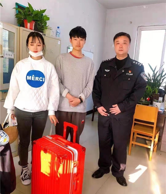 小夫妻大意丟皮箱,民警輾轉尋失主。2021年4月22日中午,荷花路派出所值班民警接到報警:有一個紅色密碼皮箱,已兩天無人認領。值班民警張斌想到,既然是密碼箱,里面一定放有比較貴重的物品,事主此時應該十分焦急,便立即驅車趕到川匯區(qū)漢陽南路的王記蒸餃店,將密碼箱帶到所里,妥善保管。但是失主在哪里?一時無處尋找,又一想,失主因丟失皮箱,可能報警求助,便馬上查看其他報警記錄,最后經(jīng)多方尋找,終于聯(lián)系上了失主。原來,一對新婚不久的小夫妻,蜜月的幸福使他們當天在飯后即簇擁著離開,竟然把密碼箱遺忘在了飯店。當他們從民警手中接過丟失7天的密碼箱時,看到戶口簿、結婚證、錢包仍然安靜地“躺”在箱子里,又感激又羞澀連聲說:“謝謝!謝謝警察叔叔!”