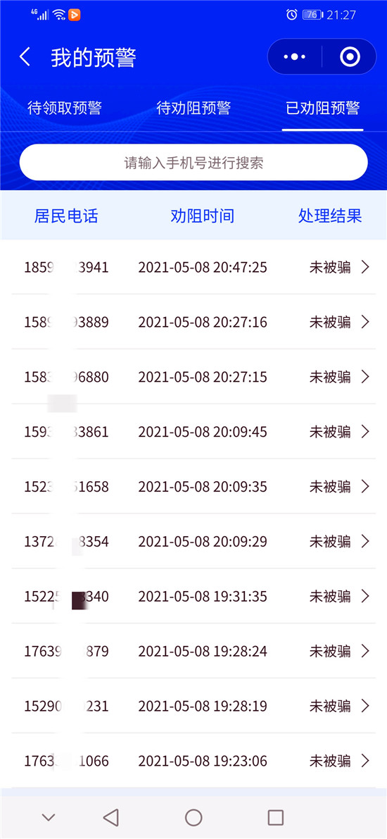 截至目前,洺南街道“金鐘罩”反詐預警系統(tǒng)注冊人數(shù)達21929人,受保護居民29547人,成功勸阻155人次免受電信網(wǎng)絡詐騙,取得了良好的社會效果。①9