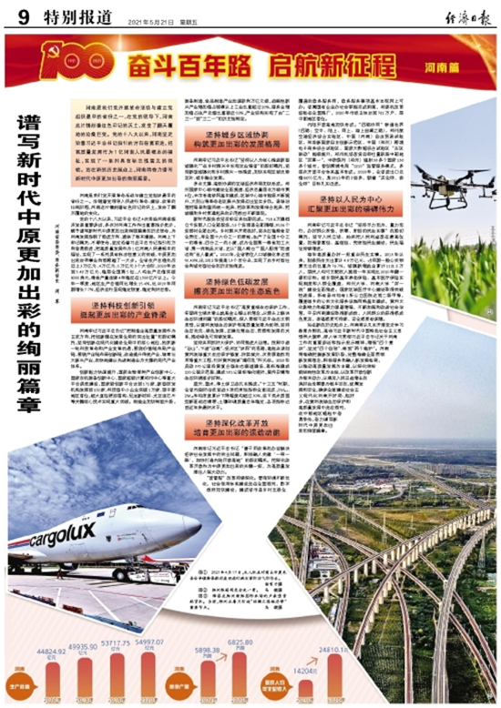 河南是我們黨開展革命活動與建立黨組織最早的省份之一,在黨的領(lǐng)導(dǎo)下,河南這片鐫刻著紅色印記的沃土,發(fā)生了翻天覆地的滄桑巨變。黨的十八大以來,河南堅定沿著習(xí)近平總書記指引的方向奮勇前進,把高質(zhì)量發(fā)展作為1億河南人民最根本的福祉,實現(xiàn)了一系列具有標(biāo)志性意義的突破。站在新的歷史起點上,河南將奮力譜寫新時代中原更加出彩的絢麗篇章。