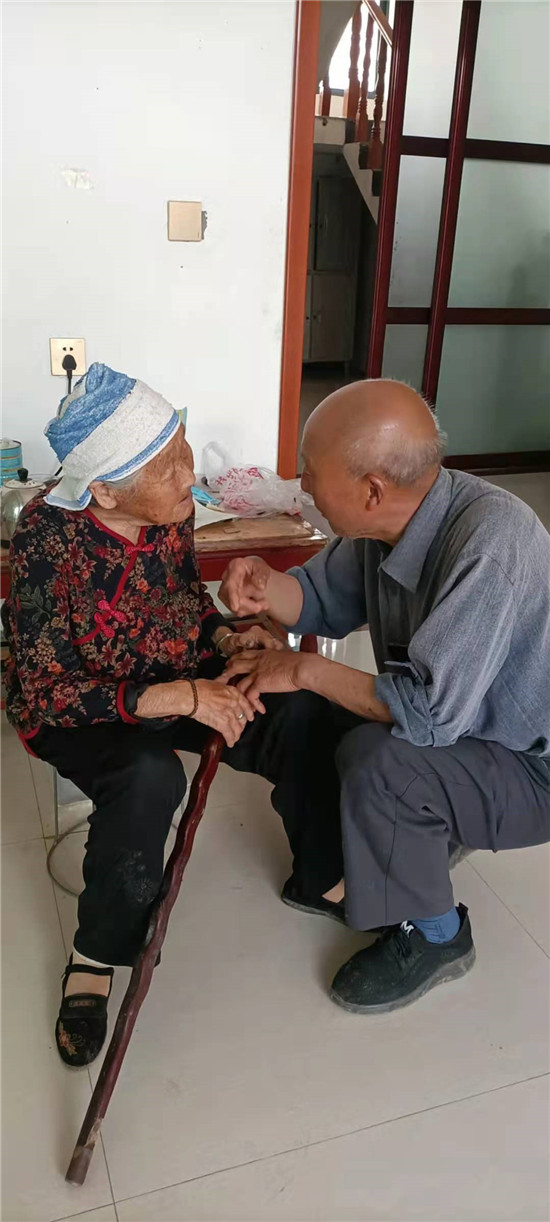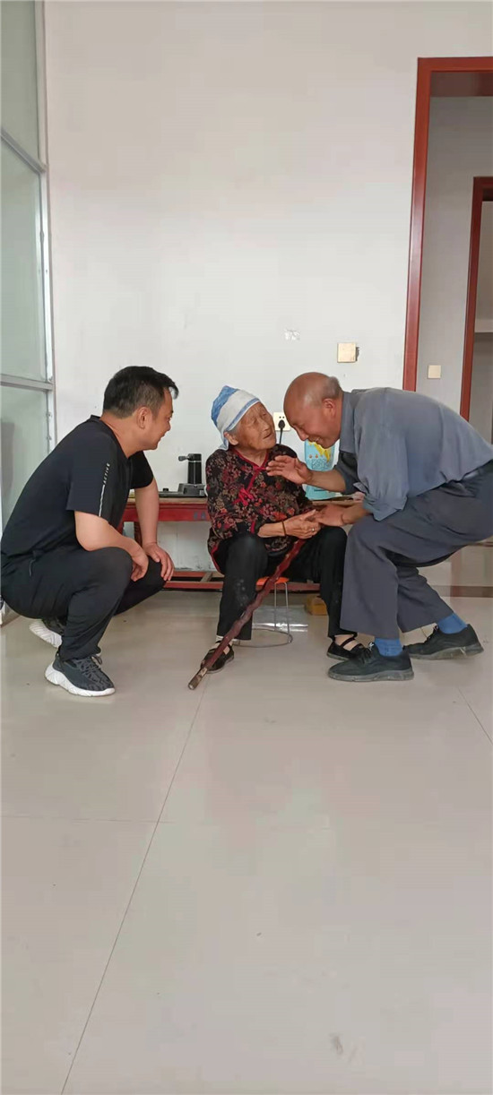 西華縣退役軍人事務(wù)局工作人員陪同薛景洪走訪知情老人。