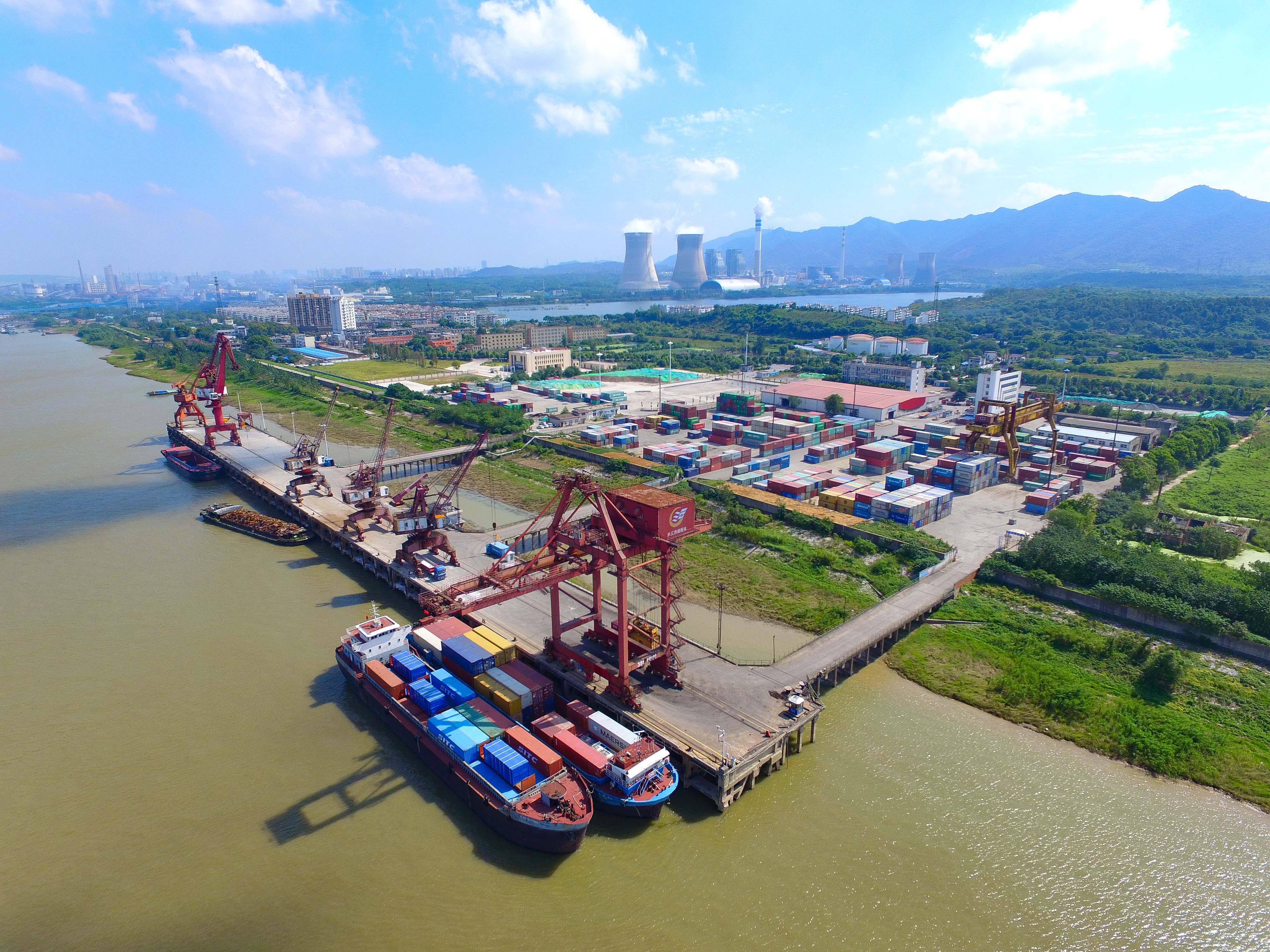 圖3:在安徽銅陵港長(zhǎng)江外貿(mào)碼頭,港口機(jī)械在裝卸集裝箱物資。安徽銅陵是我國(guó)重要的銅工業(yè)基地,銅陵港是長(zhǎng)江萬(wàn)噸級(jí)輪船終點(diǎn)港。銅陵日?qǐng)?bào)記者 詹俊 攝
