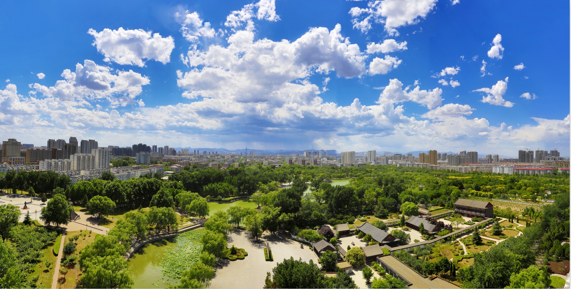 圖2:近年來(lái),邢臺(tái)市主城區(qū)空氣質(zhì)量持續(xù)好轉(zhuǎn)。圖為邢臺(tái)市達(dá)活泉公園鳥(niǎo)瞰。(邢臺(tái)日?qǐng)?bào)社全媒體記者 黃濤 攝)