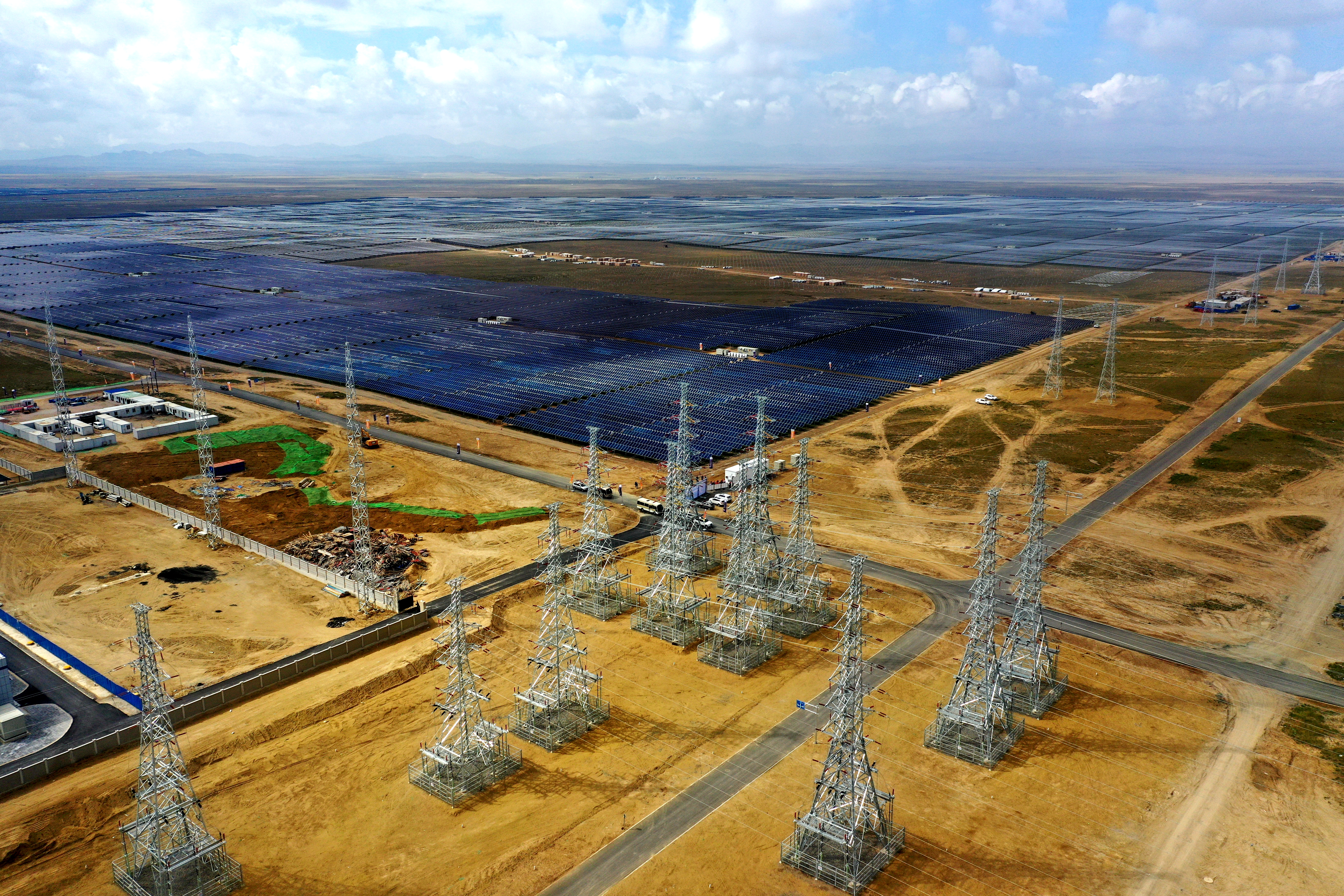 圖5:5萬千瓦熔鹽塔式光熱發(fā)電項目。(中電建青海共和50MM塔式光熱發(fā)電項目部)