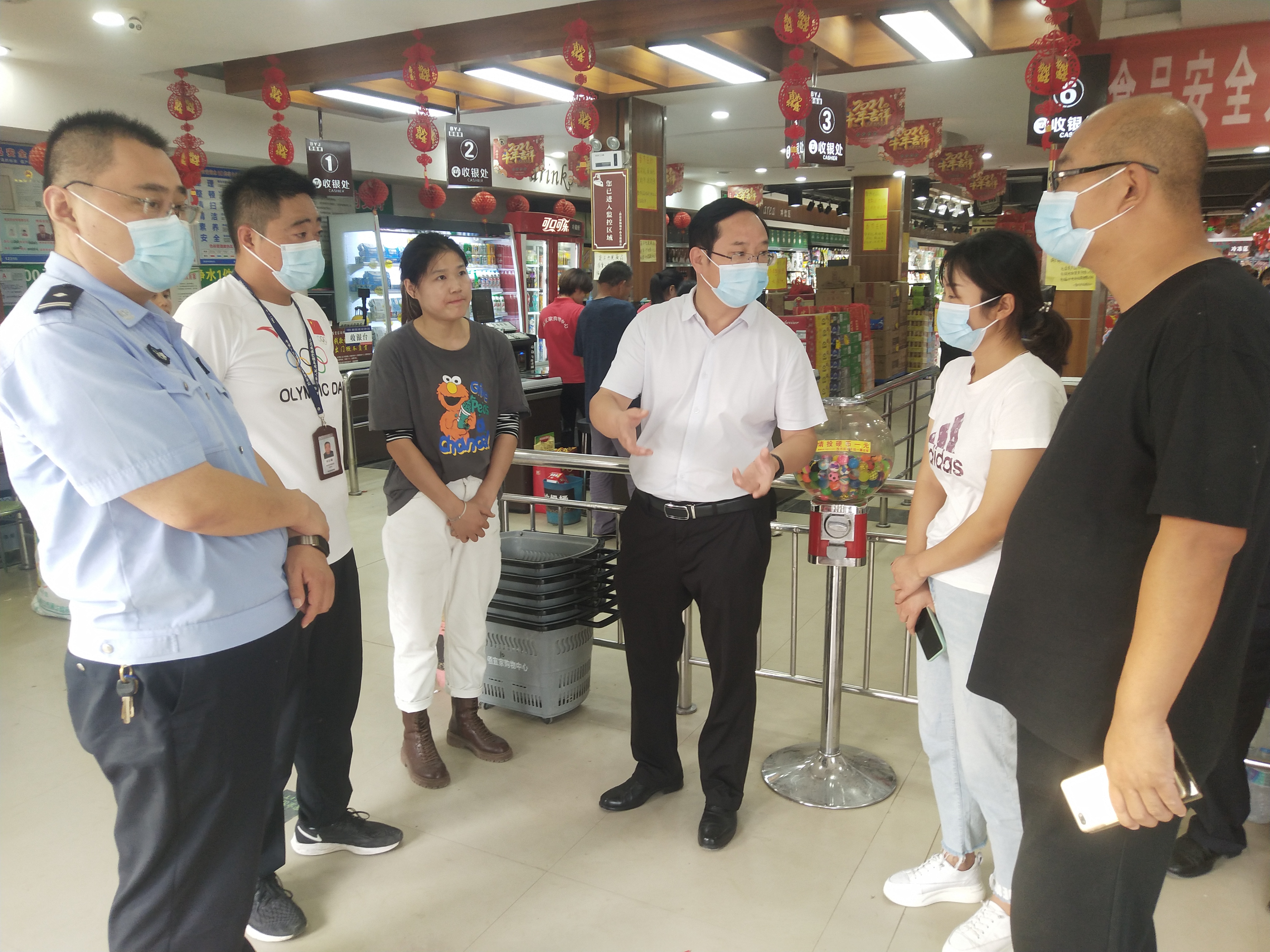“通過(guò)突擊暗訪檢查發(fā)現(xiàn),你們能夠時(shí)刻繃緊安全生產(chǎn)這根弦,安全防范工作措施比較到位。時(shí)值國(guó)慶假期,外出返鄉(xiāng)人員增多,人流物流顯著增加。你們對(duì)顧客員工佩戴口罩防疫情把關(guān)不嚴(yán)、門(mén)前車(chē)輛亂停亂放、臟亂差要整改,必須確保人民群眾過(guò)一個(gè)安樂(lè)祥和安全干凈的節(jié)日……”臨走時(shí),段文海對(duì)負(fù)責(zé)人進(jìn)行了親切叮囑。