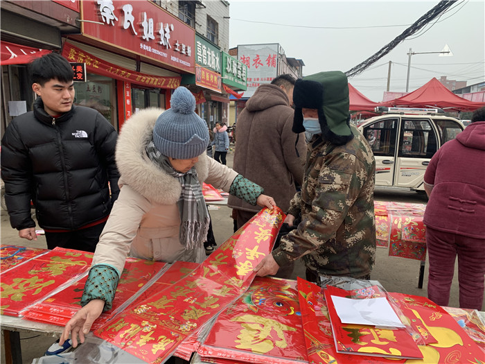 春節(jié)將至,不斷映入眼簾的喜慶“?!弊钟骋r著摩肩接踵的人群。趕集時,家家都要買幾張年畫、幾副春聯(lián),今年,以“虎”為主題的年畫春聯(lián)自然成了主角?!斑@個虎頭年畫今天已經(jīng)脫銷了,這個‘年年有余’的也喜慶?!睌傊魍醮蠼阋贿厧皖櫩吞裟戤嬕贿呅χf。年前,她早早囤好了近百種樣式的老虎年畫,現(xiàn)在看來還是不夠賣。除了過年必備的年畫春聯(lián),她還準(zhǔn)備了紅燈籠、紅燭等,也十分暢銷。