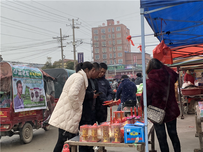 小年一過,年味愈發(fā)濃烈起來。固墻鎮(zhèn)集市是周邊幾個鄉(xiāng)鎮(zhèn)中最大的集市,從東頭綿延到西頭,南頭延伸至北頭,形成十字狀,每日趕年集的達(dá)3萬人以上,熙熙攘攘,整個道路被圍得水泄不通。商販叫賣聲、顧客還價聲、熟人之間的新年問候聲和孩子們的追逐嬉笑聲,此起彼伏、好不熱鬧。集市兩邊的攤主擺著各式各樣的大料、新鮮的瓜果蔬菜、種類齊全的鹵肉活魚、新年必備的服裝鞋帽,還有孩子們最愛的水果糖……倘若你在集市上逛上那么一圈,年貨都能一一置辦齊全。