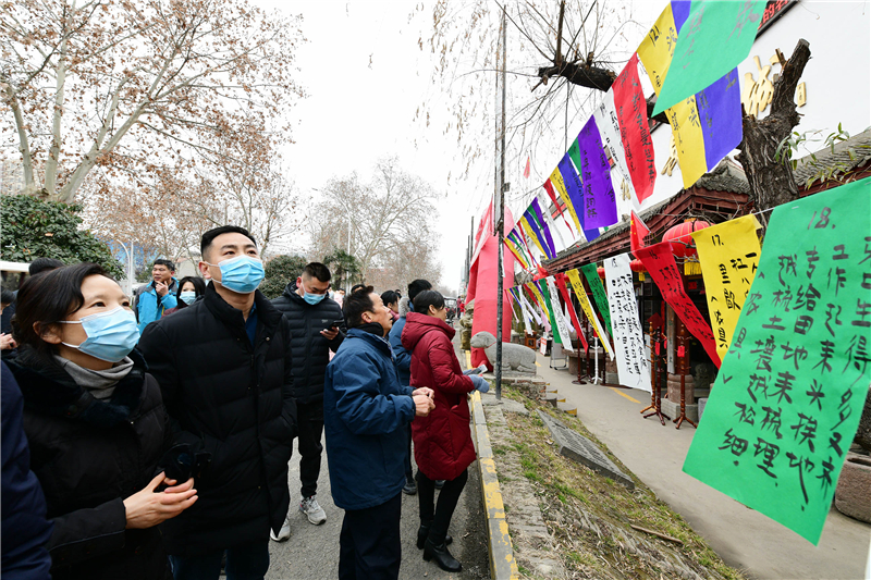 2月15日上午9時,由周口市文化廣電和旅游局、周口市文物局主辦,市博物館、市文物保護中心、市民協(xié)、華威民俗文化博物苑承辦,市民協(xié)燈謎學專委會、川匯區(qū)民協(xié)、川匯區(qū)燈謎學會協(xié)辦的元宵節(jié)燈謎競猜活動,主會場在市文化藝術中心廣場,分會場在華威民俗文化博物苑,吸引謎語愛好者踴躍競猜,甚為熱鬧。在華威民俗文化博物苑分會場的謎語現(xiàn)場,舉辦方以傳統(tǒng)形式進行,備了300條謎語,用毛筆將謎語寫在紅藍綠白紙張上,懸掛門前,讓市民競猜,氣氛熱烈濃厚。舉辦方還特意準備了跳繩、網球拍、乒乓球拍、飛鏢盤、跳棋等600份獎品,獎給猜中謎底的市民。①2