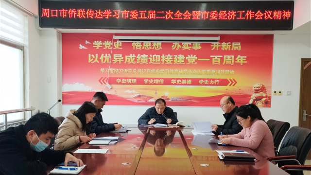 2月16日,周口市僑聯(lián)召開(kāi)黨組(擴(kuò)大)會(huì)議,傳達(dá)學(xué)習(xí)市委五屆二次全會(huì)暨市委經(jīng)濟(jì)工作會(huì)議精神,市僑聯(lián)黨組書(shū)記、主席馮連根主持會(huì)議。