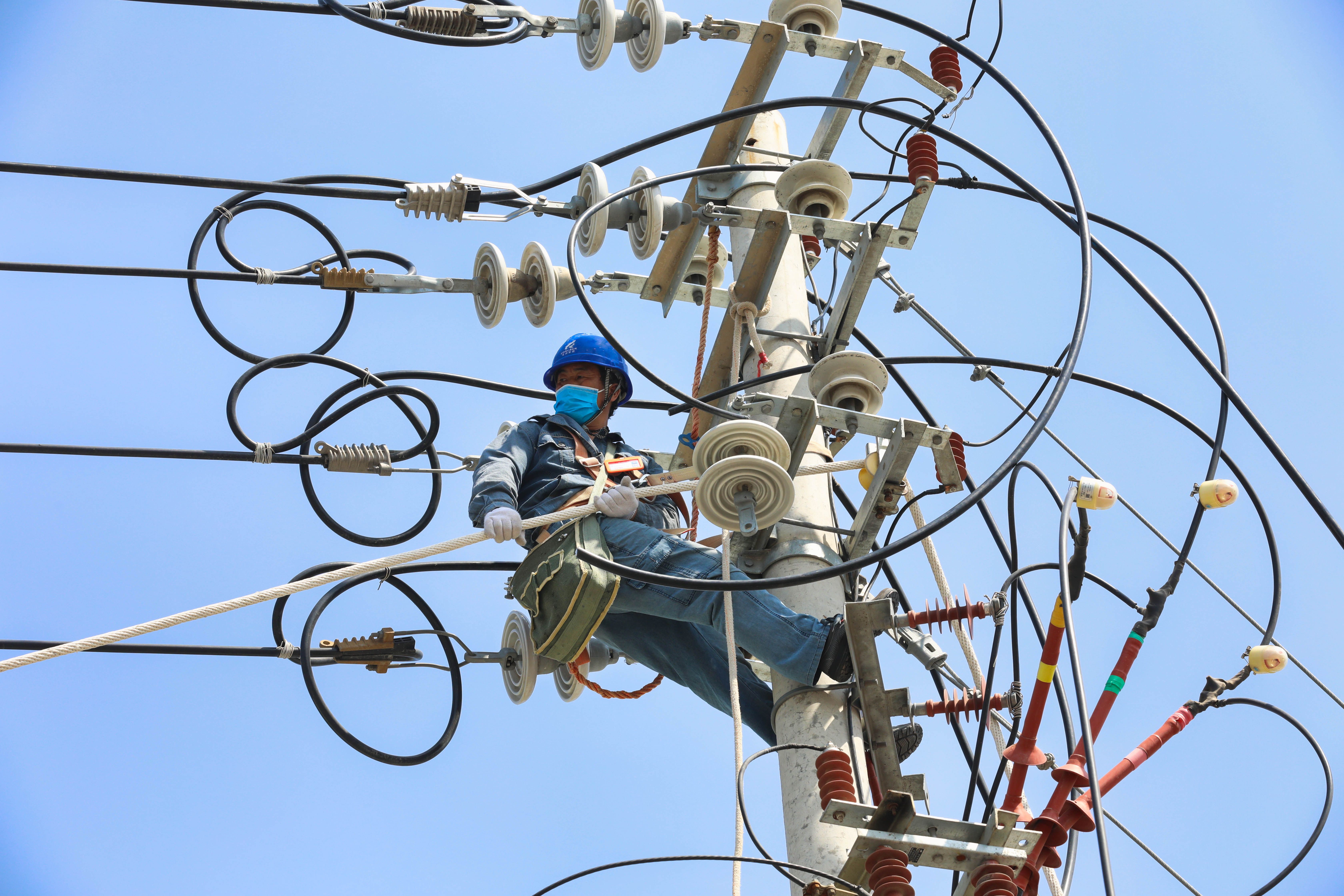 加裝故障指示器,進行缺陷消除、絕緣恢復、導線更換、清理樹障等,桿塔上、線路間,隨處可見施工人員緊張忙碌的身影。