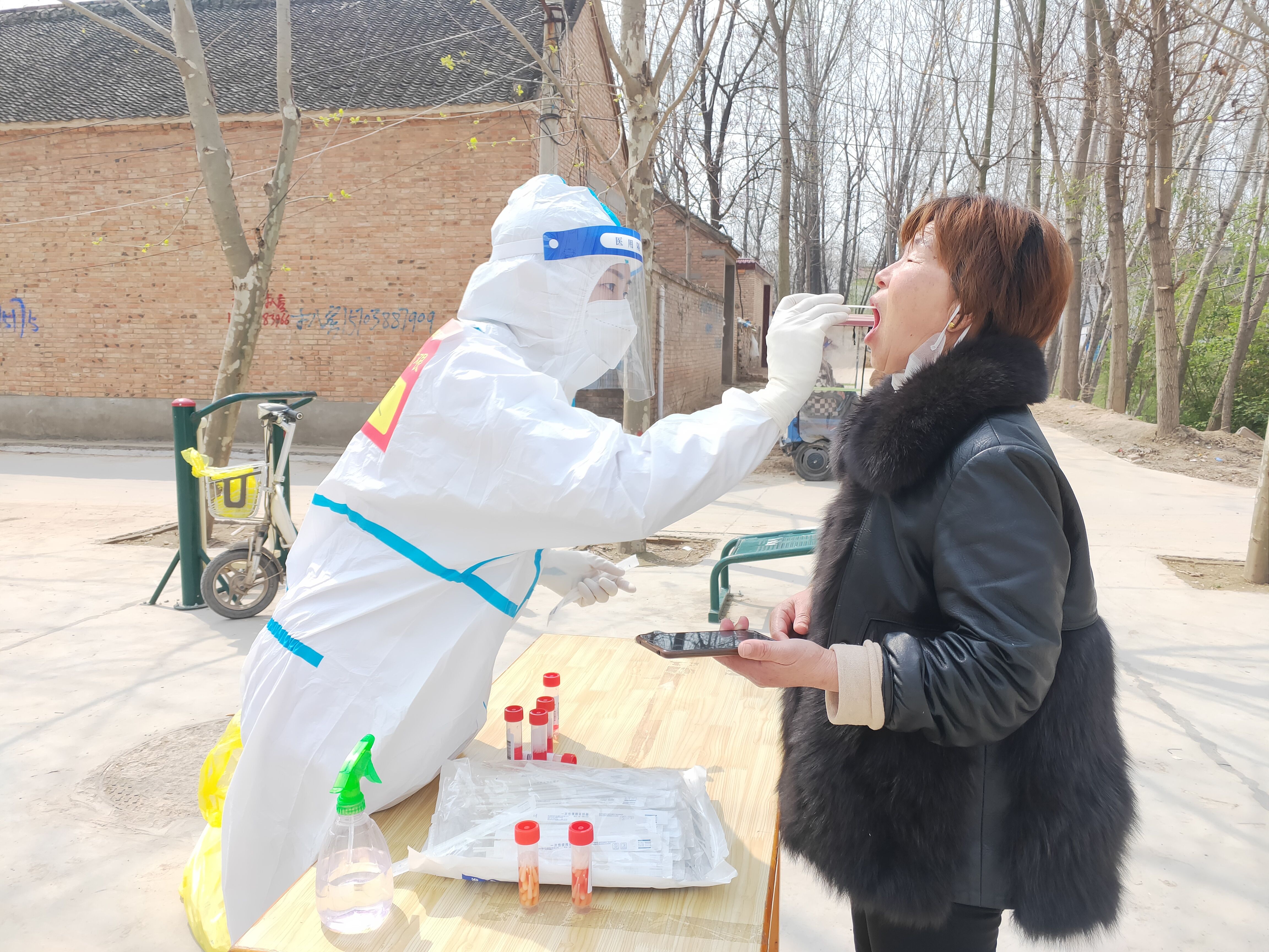 王文文和同事們于當(dāng)日早7點(diǎn)到達(dá)太康廣場(chǎng)進(jìn)行培訓(xùn)。培訓(xùn)結(jié)束后,在對(duì)接人的引領(lǐng)下,王文文帶領(lǐng)分隊(duì)46人前往太康縣張集鎮(zhèn)開展支援工作,主要負(fù)責(zé)張集鎮(zhèn)15個(gè)自然村,每日對(duì)近2萬(wàn)名群眾進(jìn)行核酸采集,他們分為15個(gè)組,一組負(fù)責(zé)一個(gè)采集點(diǎn)。第一天大家都沒(méi)有經(jīng)驗(yàn),工作中,王文文不時(shí)接到其他組隊(duì)員的咨詢電話,王文文詳細(xì)地為他們一一解答,保證工作順利開展。