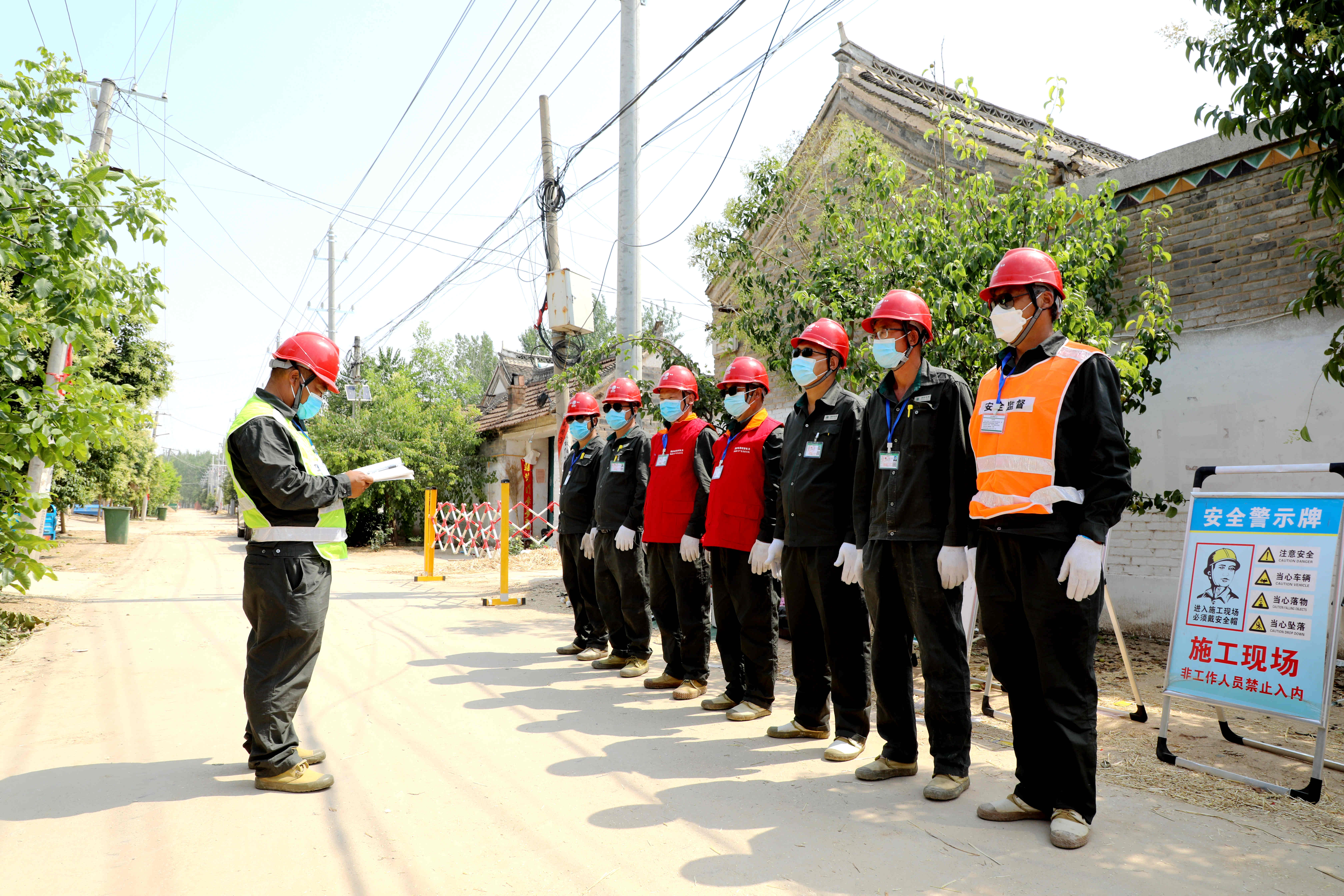 6月9日,在西華縣皮營鄉(xiāng)齊莊行政村潭張1號臺區(qū)施工現(xiàn)場,國網(wǎng)西華縣供電公司組織焦裕祿共產(chǎn)黨員服務(wù)隊(duì)帶領(lǐng)施工人員分工協(xié)作、高效配合,安裝電表箱、更換下戶線、增容變壓器、新建低壓線路。