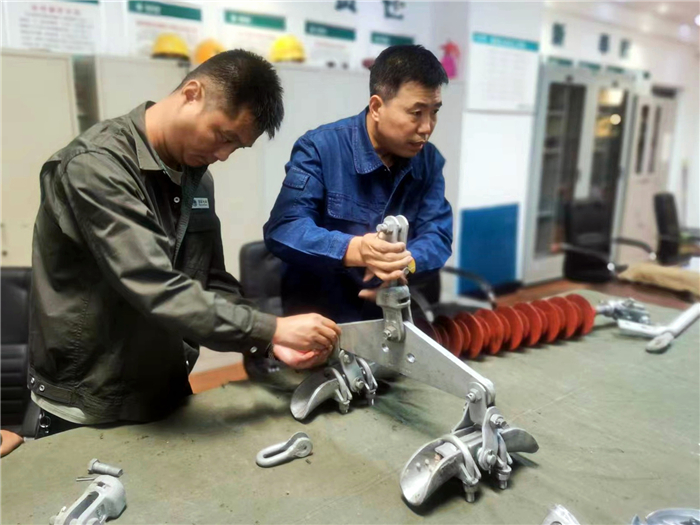 為把學習落到實處,提高班組成員主動學習的積極性,在當日的學習中,經驗豐富的老師傅還手把手地帶領青年員工對金具進行現場組裝。他們積極討論,相互切磋,取長補短。