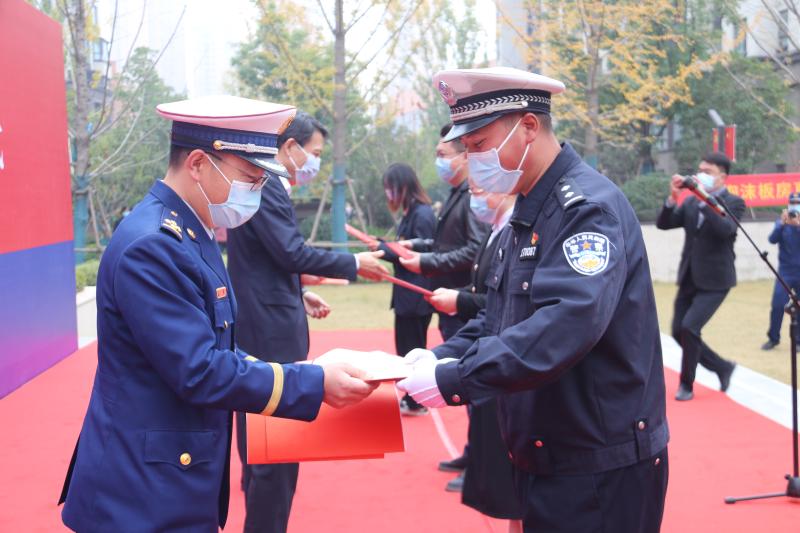 啟動儀式上,社區(qū)居民、民間救援人員等在宣傳墻上簽字,沈丘縣相關領導還為消防大隊聘任的4名消防宣傳形象大使頒發(fā)了聘任證書。