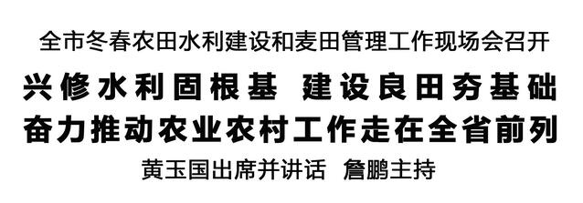 本報訊 (記者 王艷) 12月12日,全市冬春農(nóng)田水利建設(shè)和麥田管理工作現(xiàn)場會在商水召開,深入學(xué)習(xí)貫徹習(xí)近平總書記在河南考察時重要講話精神和關(guān)于“三農(nóng)”工作、治水興水的重要論述,全面落實全省冬春農(nóng)田水利建設(shè)和麥田管理視頻會議部署,分析研判當(dāng)前形勢,安排部署重點任務(wù),扎實推進今冬明春農(nóng)田水利建設(shè)和麥田管理等重點工作。市委書記黃玉國出席并講話。市長詹鵬主持。