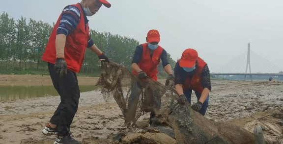 志愿者對(duì)沙潁河開展“凈灘行動(dòng)”