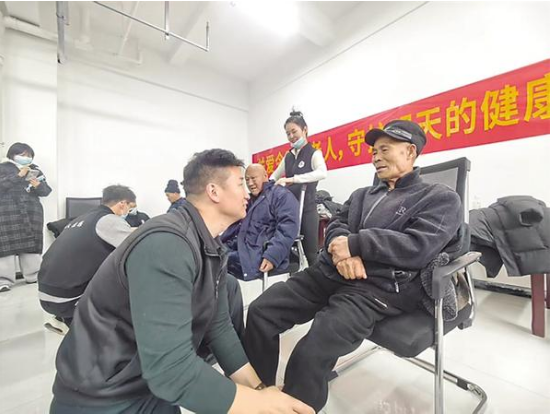 3月7日,志愿者在幫老人按摩。當(dāng)日,市中小企業(yè)商會聯(lián)合愛心人士來到川匯區(qū)中心敬老院開展以“關(guān)愛老人·傳遞溫暖”為主題的公益慰問活動。志愿者不僅和老人拉家常、為老人按摩,還為他們帶來了米、面、油和醫(yī)用口罩等物品。