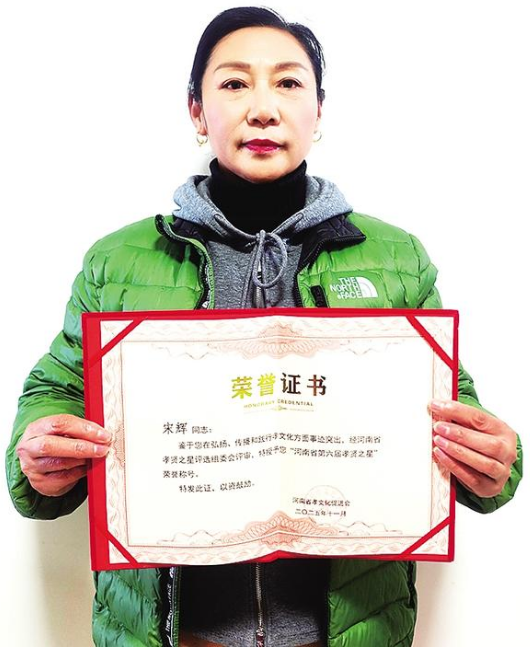 12月13日,一份承載著榮譽(yù)的郵件抵達(dá)淮陽(yáng)區(qū)淮寧街道。當(dāng)天,退休職工宋輝收到了來(lái)自河南省第六屆“孝賢之星”評(píng)選組委會(huì)寄來(lái)的燙金榮譽(yù)證書、紀(jì)念勛章及綬帶,她被評(píng)選為河南省第六屆“孝賢之星”。