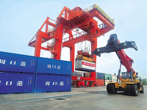 5月17日,“國控·首航號”集裝箱貨船從周口中心港范營作業(yè)區(qū)起航,將我省生產的無煙煤運往日本。本航班通過“散改集”開創(chuàng)了周口港集裝箱裝煤模式,為煤炭運輸方式的創(chuàng)新提供了新思路和新實踐。