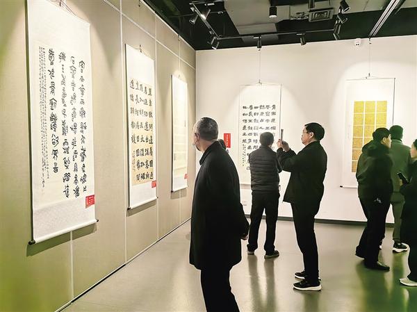 3月14日,市民在周口美術(shù)館觀展。由中共河南省委宣傳部、河南省文學(xué)藝術(shù)界聯(lián)合會(huì)指導(dǎo),河南省美術(shù)家協(xié)會(huì)、河南省書法家協(xié)會(huì)等部門共同主辦的“翰墨潤(rùn)中原——河南省美術(shù)書法作品大賽獲獎(jiǎng)作品展周口巡展”當(dāng)日開展。