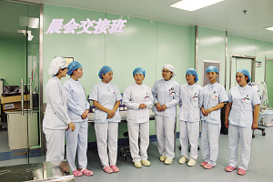 當(dāng)然,護(hù)理工作并非一帆風(fēng)順。眾所周知,ICU收治的都是重癥患者,患者大多數(shù)都有精神障礙,譫妄、昏迷、煩躁不安等狀況很常見(jiàn),這就需要護(hù)士們充滿耐心和愛(ài)心。張衛(wèi)華以實(shí)際行動(dòng)詮釋人間大愛(ài)。2014年8月,科室里來(lái)了一名Ⅱ級(jí)肝性腦病的男性患者,已經(jīng)精神錯(cuò)亂且不認(rèn)人,行為非常危險(xiǎn)。由于該病不能使用鎮(zhèn)靜藥物,當(dāng)責(zé)任護(hù)士靠近患者時(shí),患者拿起床頭柜上的一個(gè)玻璃瓶向護(hù)士砸去。作為護(hù)士長(zhǎng)的張衛(wèi)華見(jiàn)此情景,臨危不懼,用自己的身軀保護(hù)責(zé)任護(hù)士。只聽(tīng)見(jiàn)啪的一聲,鮮血順著她的臉頰流了下來(lái),可她還是慢慢走向那名患者,輕聲向他解釋情況以安撫其情緒?;颊叩那榫w漸漸地穩(wěn)定下來(lái),她才去處理傷口,并輕松地說(shuō):“只要沒(méi)傷著病人就好。”有一次,科室里來(lái)了一名心梗住院的老人,老人的孩子都在外地,得知老人生病住院也沒(méi)趕回來(lái)照顧,甚至連一句問(wèn)候都沒(méi)有。老人除了要忍受著病痛的折磨,還要忍受對(duì)孩子們的思念。張衛(wèi)華見(jiàn)此情景,非常心疼,為安慰老人,上班期間她都會(huì)去陪老人聊天,哄老人開(kāi)心。老人吵著不舒服的時(shí)候,張衛(wèi)華用藥緩解,同時(shí)耐心安撫老人。晚上老人因?yàn)楹⒆拥氖虑?,?huì)像一個(gè)小孩兒一樣哭泣不止,張衛(wèi)華心疼地陪在老人身邊,一遍又一遍地安慰說(shuō):“別害怕,我在您身邊,我就是您的女兒?!?/P>